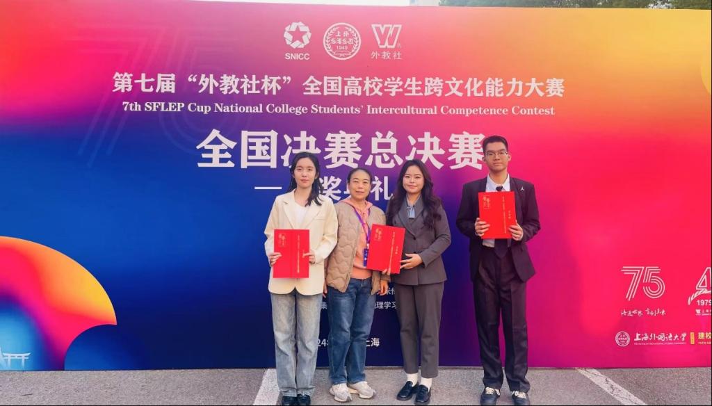 11月28日-12月1日,第七届“外教社杯”全国高校学生跨文化能力大赛在上海外国语大学成功举办。由巩奕含(统计与数据科学学院)、崔又心(统计与数据科学学院)、杨浩然(外国语学院)组成的黄色动漫