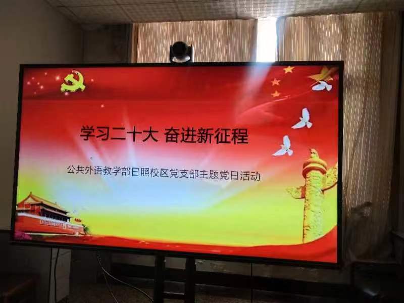 日照校区党支部在JC1002举行了“学习二十大,奋进新征程”主题党日活动,会议由支部书记杜庆凤主持,全体党员参加。