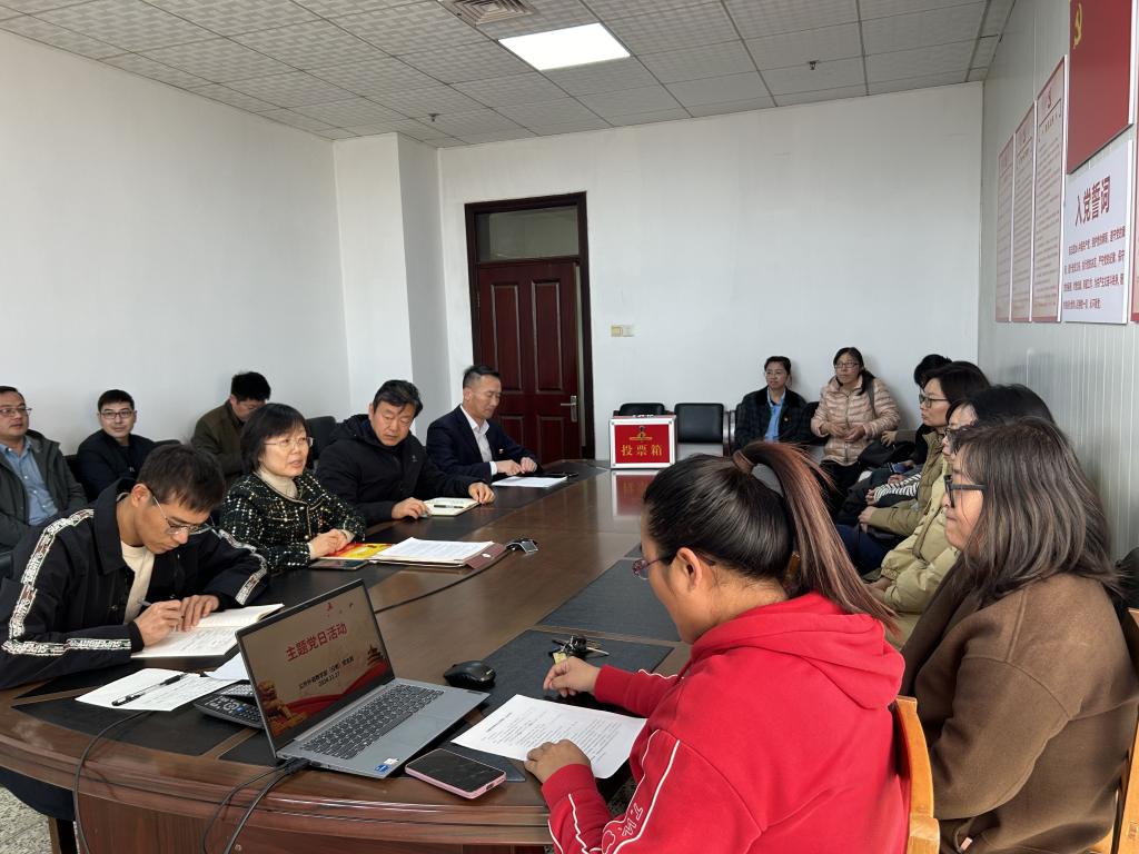 日照校区党支部在JC1002会议室开展主题党日活动,集中学习11月份理论学习材料。会议由支部书记杜庆凤主持,全体党员参加。日照校区党委委员王光江同志列席了会议。