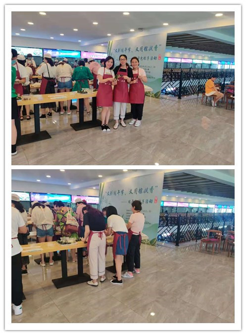 活动现场,生活服务中心的工作人员已经准备好了包粽子的材料,老师们热情高涨,跟着指导厨师的步骤,卷粽叶、加米、加蜜枣、掩口、裹紧、系绳,一个个忙的不亦乐乎,从生疏的“新手”很快练成了娴熟的“能手”,一颗颗饱含祝福的粽子相继诞生,大家在一片欢声笑语中体验着包粽子的快乐。
