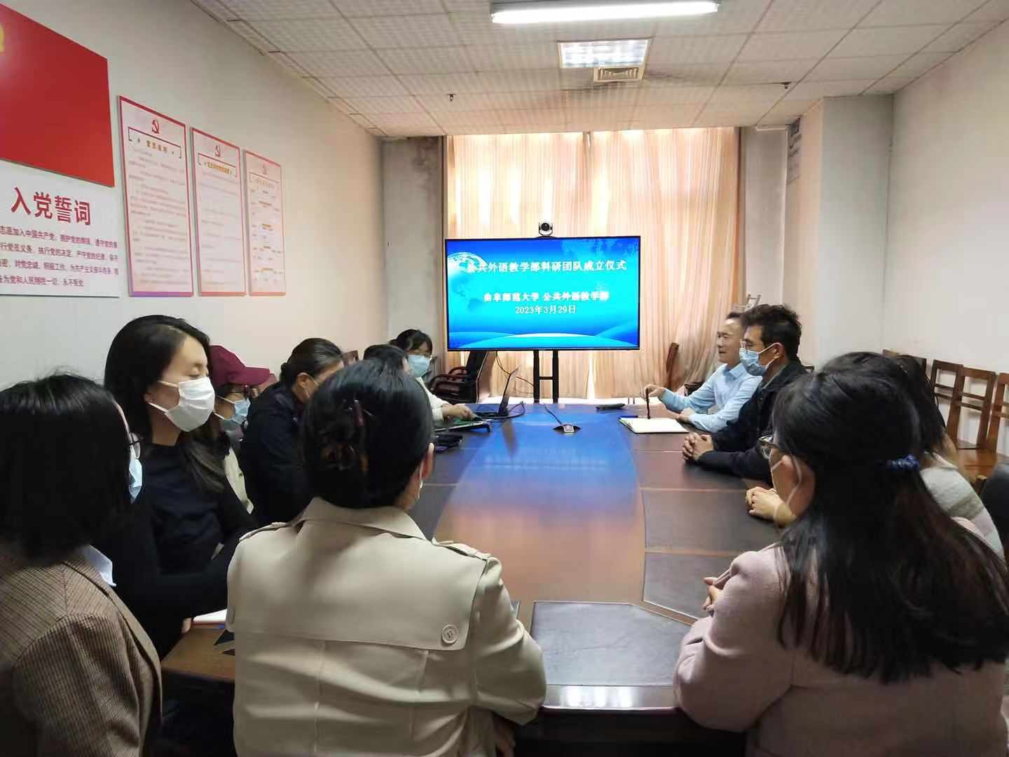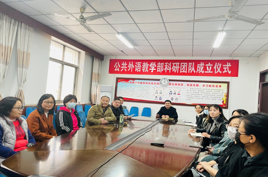 在单位会议室举行科研团队成立仪式。会议由王福祥主任主持,各团队骨干成员共40余人分别在曲阜和日照校区通过视频方式参与了整个成立仪式。