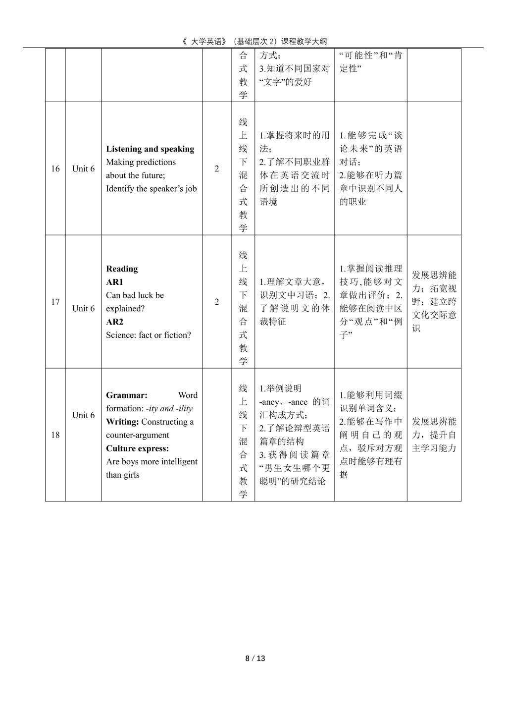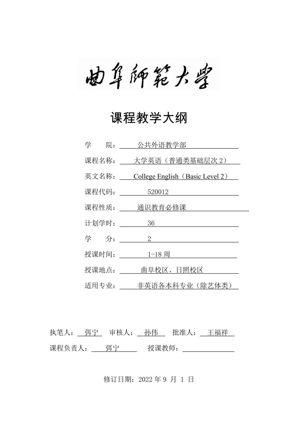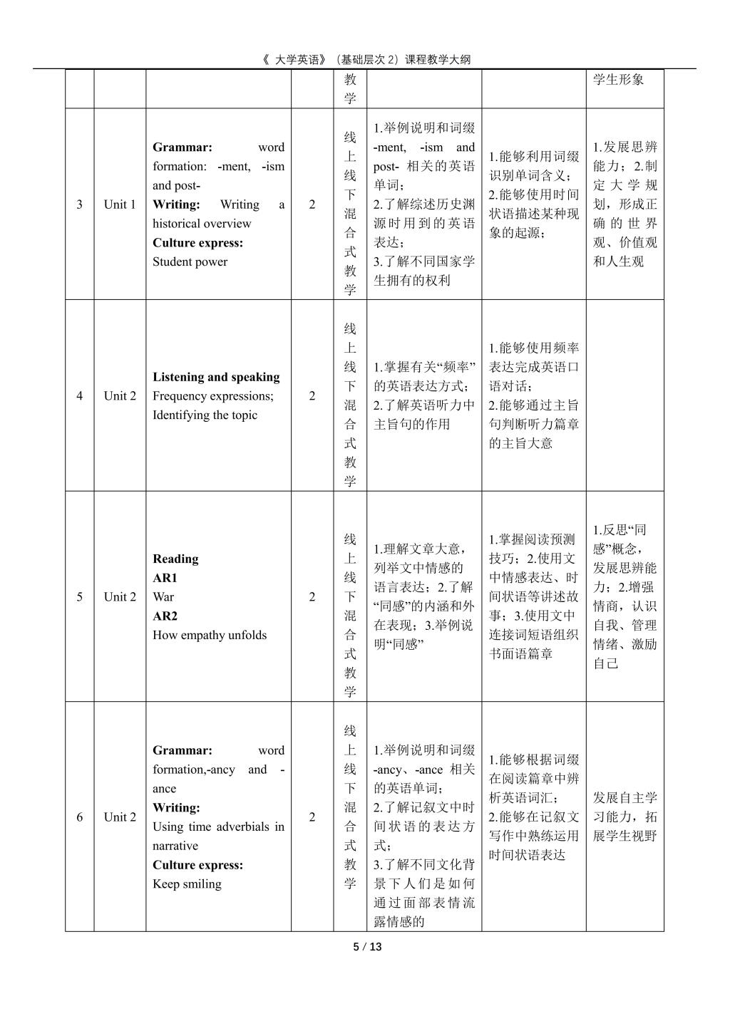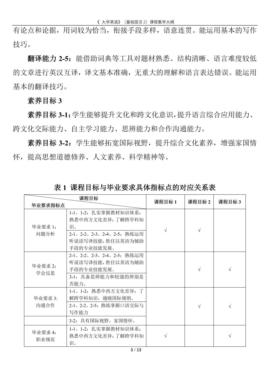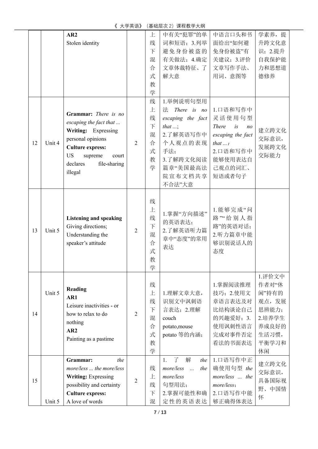 大学英语(普通类基础层次2)课程教学大纲(2022版)