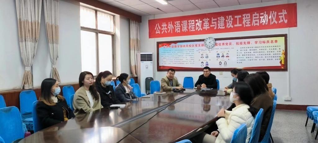 课程改革与建设工作方案》作了宣读和简要说明。他指出,要进一步突出教学工作中心地位,启动“2023教学质量提升年”计划,深化公共外语课程教学改革,夯实课程教学团队,提升教师课程领导力与执行力,培育各类精品课程,切实提高我校本科生大学英语与研究生公共英语教学质量。他还就课程改革与建设目标作了说明,具体包括:完善大学英语多元化课程体系和研究生公共英语课程教学体系,重点建设大学英语拓展课课程群,打造一个拥有10门左右优质课程的大学英语拓展课课程群;按照学校金课堂建设要求,建设3-5门优质大学英语“金课堂”;深入调研大学英语“ESP”课程和研究生学术英语课程现状,制定出具体实施方案,开展1-3项试点工作;培育高水平教材或课程改革类研究论文5-8篇(部)。为此,各团队务必科学论证,认真谋划,形成完善的建设方案,并稳步推进各项建设工作。