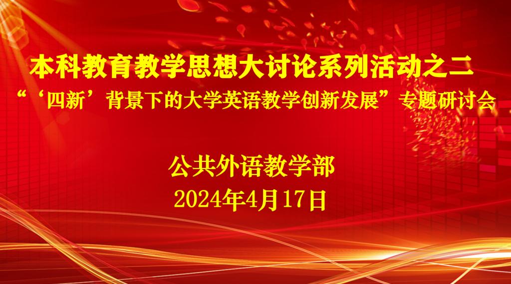 在今后要重点破解的发展问题。他认为,要回答好“强国建设,外语何为”这一时代命题,落实到本单位的工作实际,就是进一步深化大学英语教学改革,完善大学英语分级教学体系,优化人才培养方案,加大课程改革,提高课堂教学质量。与此同时,要重视大学英语课程思政高质量建设,推动大学英语教育与中华优秀传统文化教育高度融合,深化数字赋能大学英语课程建设与课堂教学改革。他强调,只有不断深化大学英语教育教学改革,稳步提升教学质量,才能为培养综合专业素养过硬、有家国情怀、有全球视野的高质量复合型人才发挥好大学英语的基础性支撑作用。