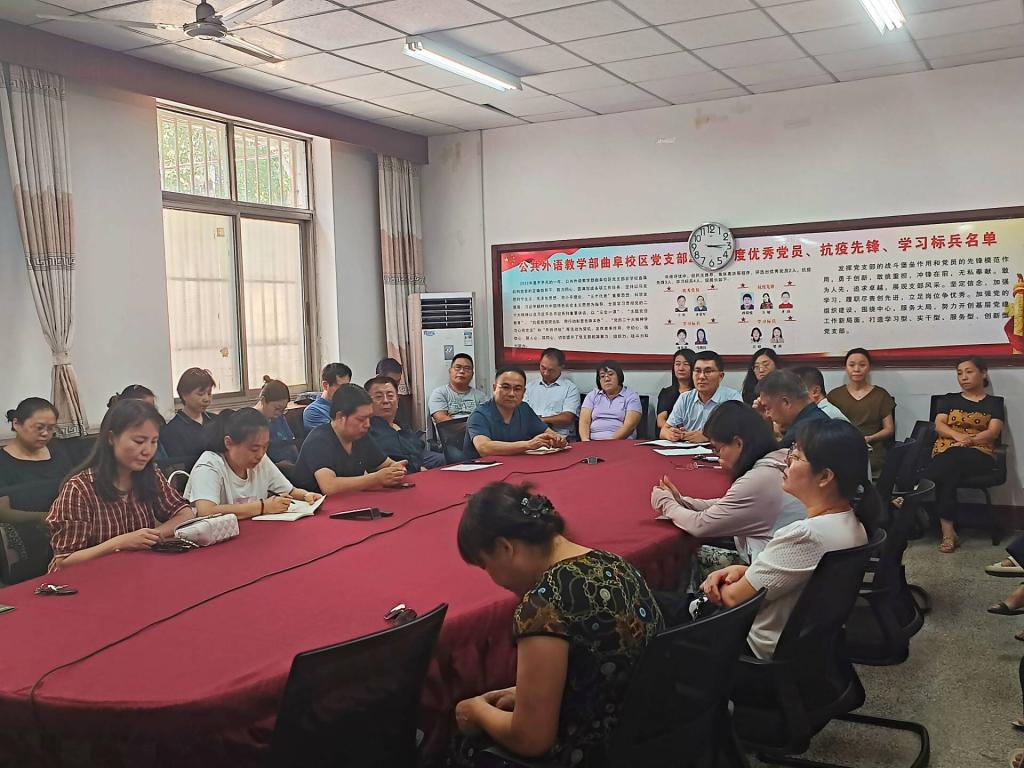 新学期思想政治理论学习、师德师风建设、意识形态管控、教学质量提升、科学研究发展、青年教师专业成长等主要工作进行了深入分析和总体部署;他要求全体教师在做好常规教学工作的基础上,加大科研攻关力度,积极投入到各类重点课题申报工作,积极参加各类学术会议,充分发挥奖励机制作用,力争取得更多高层次成果,实现高质量发展。针对师德师风建设问题,他着重强调全体任课教师在日常教学工作中要时刻拉直绷紧意识形态红线,立师表,铸师魂,规范课堂管理,注重师生交往,弘扬主旋律,传递正能量,切实提升我校公共外语教学质量,扎扎实实为我校人才培养工作做好基础性支撑工作。