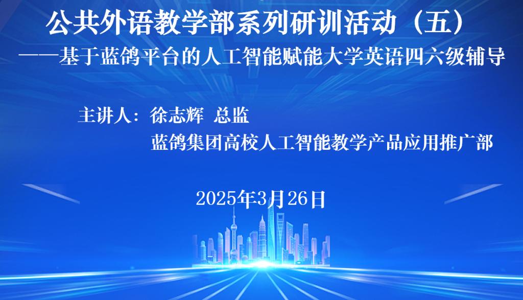 将以此次研训为契机,持续加强教师AI+数智素养培训,推动大学英语课程教学模式创新,为学生提供更加优质的智慧教育服务,加强大学英语四、六级辅导,进一步提升大学英语课程教学质量,为我校高质量人才培养贡献力量。