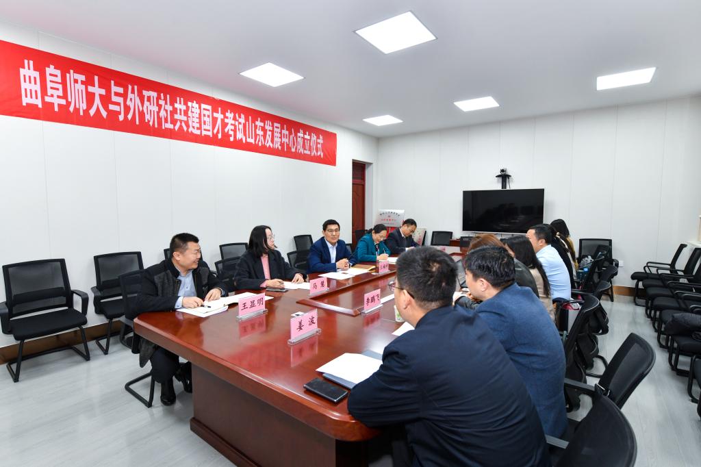 与外研社的战略合作迈入高质量发展新阶段。此次合作是曲师大与外研社深化产教融合,落实国家人才强国战略的创新实践。双方将以山东发展中心为纽带,整合优质资源,构建“立足齐鲁、面向全国、放眼世界”的国际化人才培养体系,推动国才考试在省内高校的普及与创新,助力更多学子成为“懂国情、通外语、精专业”的全球治理人才。